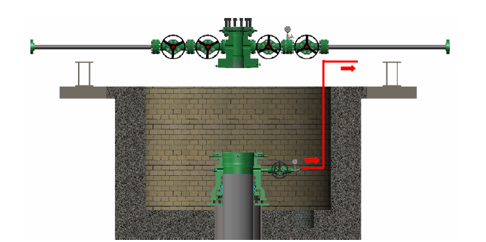 3.4.3 校正套管頭,使套管頭旁通閥中心線與內(nèi)控管線出口中心線方向一致。