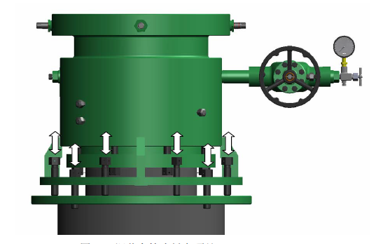 3.2 套管頭底法蘭外殼下部通過下卡瓦與套管柱聯(lián)接,上部通過標(biāo)準(zhǔn)法蘭連 接四通及防噴器。