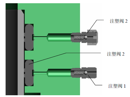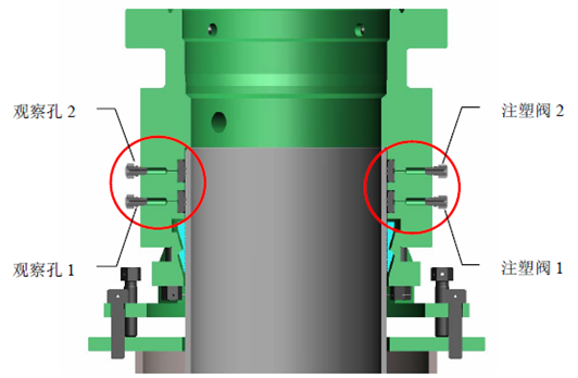 3.6.5 向BT密封圈注塑,直至另一側(cè)觀察孔1流出密封脂為止。